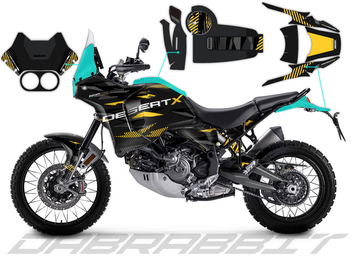 - Full Graphics kit included: Wind screen, Head light cover, Radiator shrouds, Front and Rear fender, Lower fork guards, Swing arms, Airbox, Gas tank and Cap, Rear frame.